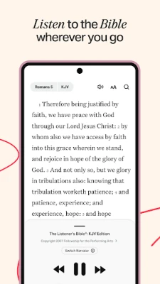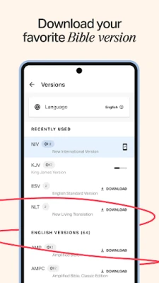 Sukeldu laiahaardelisse pühakirjakogusse, mis sisaldab sadu piiblitõlkeid enam kui 1000 keeles, sh populaarsed versioonid nagu NIV, KJV, NLT ja paljud teised. Lihtsalt vali endale sobiv liidesekeel enam kui 40 valiku hulgast. Teatud versioone saad lugeda ka täiesti võrguühenduseta, mis võimaldab sul Raamatut uurida ka siis, kui internet pole käepärast. Elusta pühakirja veelgi audiopiiblite abil, millel on täielikult uuendatud esituskiiruse, vahelejätmise ja ajasti juhtnupud, pakkudes meeldivat kuulamiskogemust valitud tõlgetest. Lisa oma uurimisele sügavust, vaadates inspireerivaid klippe populaarsest TV Piiblit käsitlevast lühisarjast ja maailma muutvast filmist "Jeesus". Leia kiirelt otsitavad salmid või teemad rakenduse võimsa otsingufunktsiooni abil.