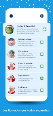See rakendus pakub sulle enneolematut meelelahutust. Ühendu Jõuluvanaga kohe või isikupärasta oma kogemust: vali sobiv aeg ja teema kolme eelnevalt salvestatud videokõne variandi hulgast. See ei ole lihtsalt videosalvestis; see on dünaamiline, mitmekesine ja realistlik simuleeritud vestlus. Veelgi enam, lubades videosalvestuse funktsiooni, saad salvestada oma reaktsiooni kõnele, talletada selle hinnalise mälestuse ja jagada seda oma sotsiaalmeedias, et levitada pühaderõõmu! Loo oma perele eluaegne mälestus, tuues Jõuluvana otse oma koju. Naudi Jõuluvana kutsumist ja veeda unustamatult lõbus jõulupüha oma sõprade ja perega. See on tasuta rakendus, mis toob Põhjapooluse võlu otse sinu kätte, vaid ühe puudutusega.