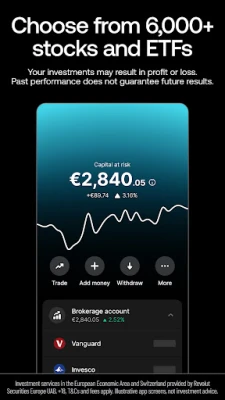 Avastage investeerimisvõimaluste maailm otse Revolutis. Alustage aktsiatega kauplemist juba 1 eurost, valides enam kui 2000 populaarse ettevõtte hulgast. Nautige igakuist komisjonitasuta aktsiatehingute piirmäära ja süvendage oma teadmisi meie õppekursuste ja viktoriinidega. Teie raha ja andmete turvalisus on meie prioriteet. Revolut annab teile täieliku kontrolli: külmutage ja avage oma kaart vaid ühe nupuvajutusega, kasutage ühekordseid kaarte täiendava kaitsekihi loomiseks ning seadke kululimiite. Reguleeritud pangana kaitseme teie raha Leedu Riikliku Hoiuste ja Investeeringute Kindlustuse kaudu. Meie keerukas pettustevastane süsteem tuvastab riskantsed tehingud ja annab teile koheselt märku, samal ajal kui range identiteedikontroll ja biomeetrilised kaitsed tagavad teie konto puutumatuse. Vajadusel on meie klienditugi teile abiks 24/7.